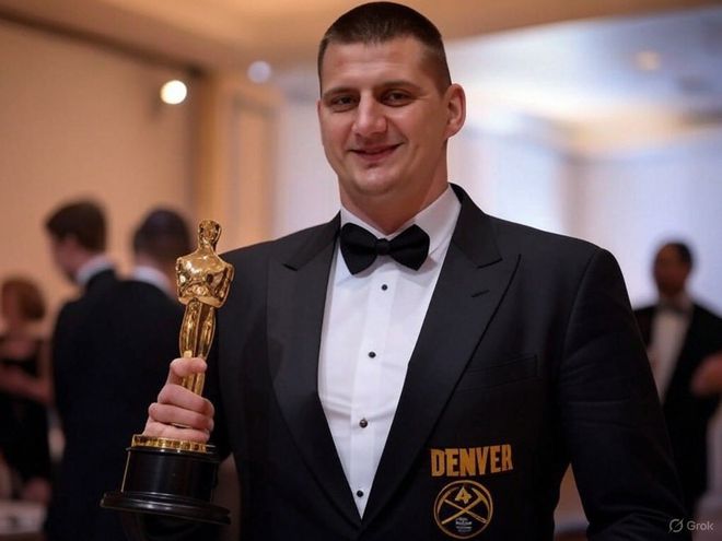 赛后,有媒体晒出一张P图,调侃约基奇影帝级的假摔,该去奥斯卡拿奖。