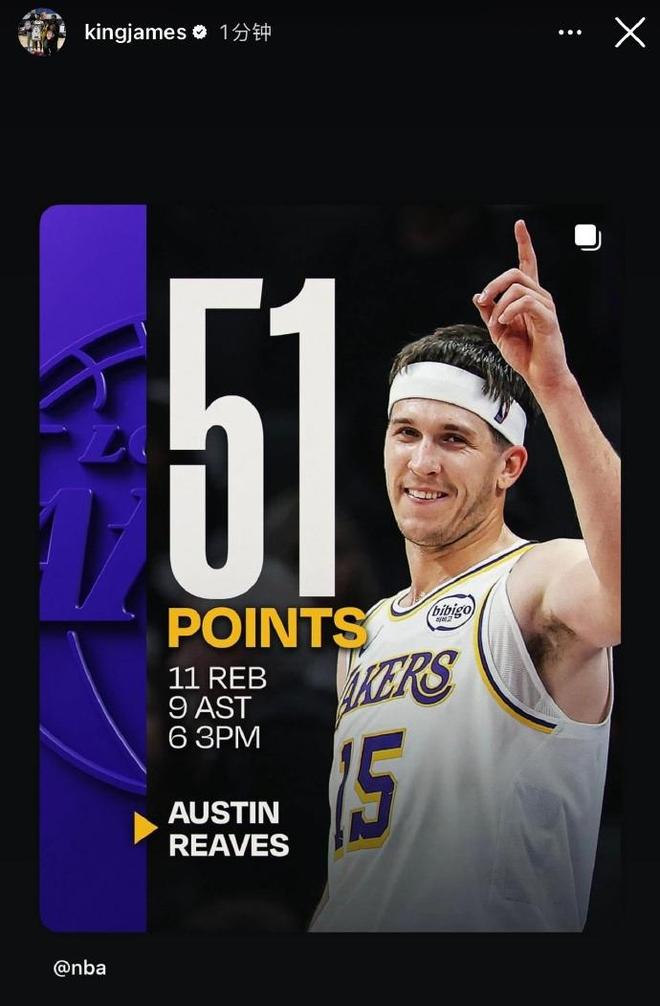 湖人客场对阵国王的比赛中,詹姆斯、东契奇、文森特等主力因伤缺席,里夫斯成为唯一进攻核心。