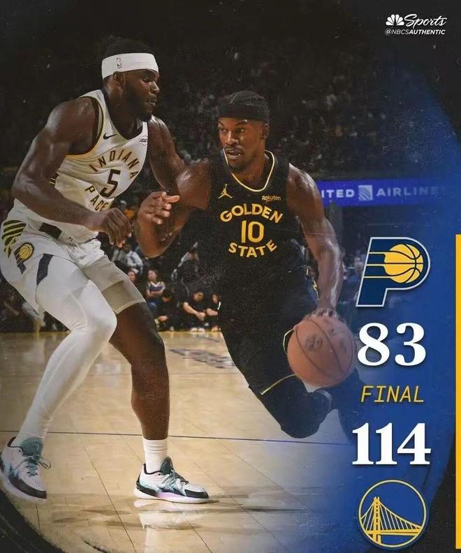 巴特勒21+9+7勇士一波流击溃步行者止连败,库里缺席霍福德12+4